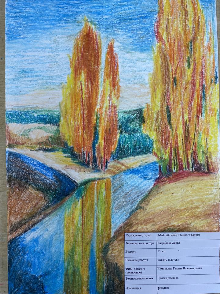 13 Гаврилова Дарья В обработке "Золотая осень" Рисунок Чумичкина Галина Владимировна Принята Фотография работы