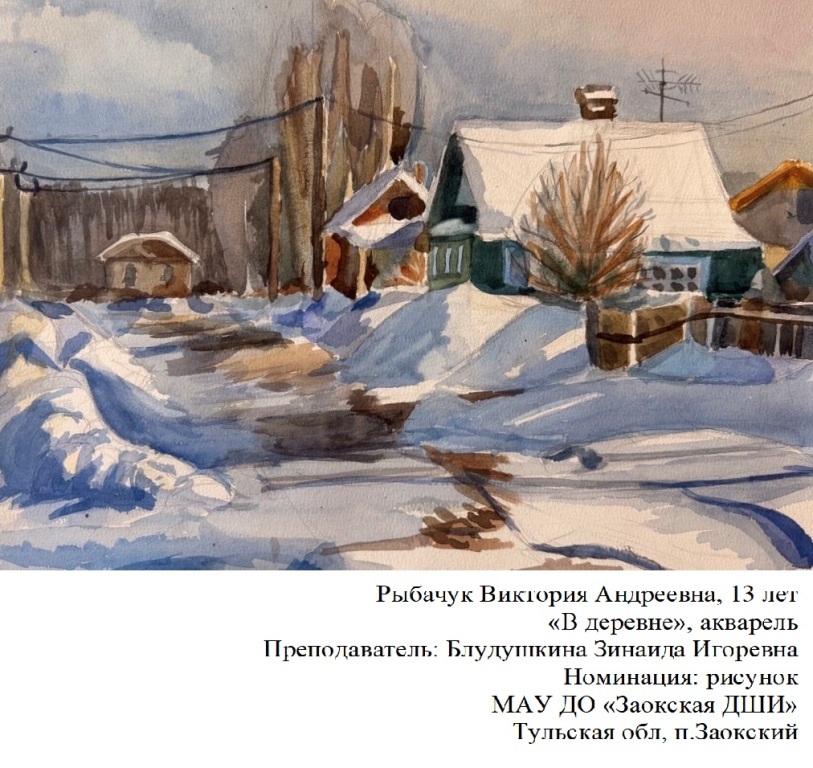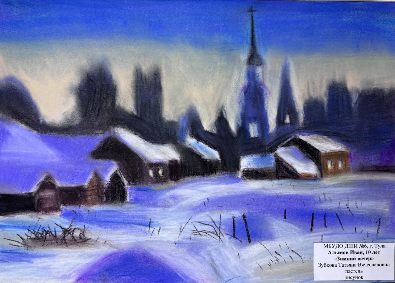 | 22 | Алымов Иван | "Зимний вечер" | Рисунок | Зубкова Татьяна Вячеславовна | Фотография работы |