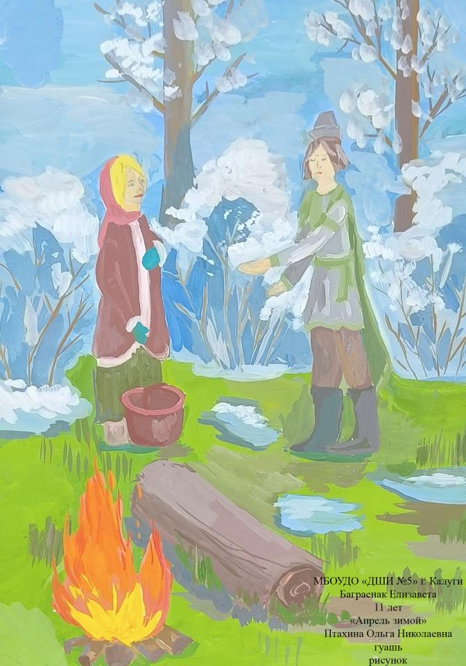 | 36 | Баграенак Елизавета | "Апрель зимой" | Рисунок | Птахина Ольга Николаевна | Фотография работы |