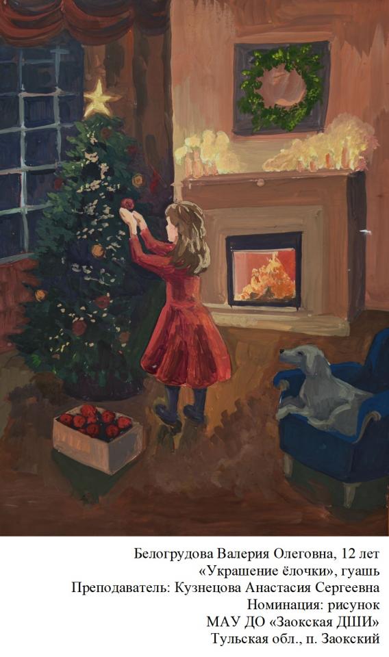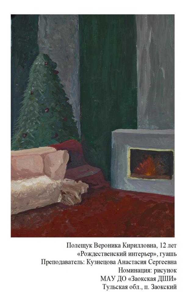 | 90 | Полещук Вероника | "Рождественский интерьер" | Рисунок | Кузнецова Анастасия Сергеевна | Фотография работы |