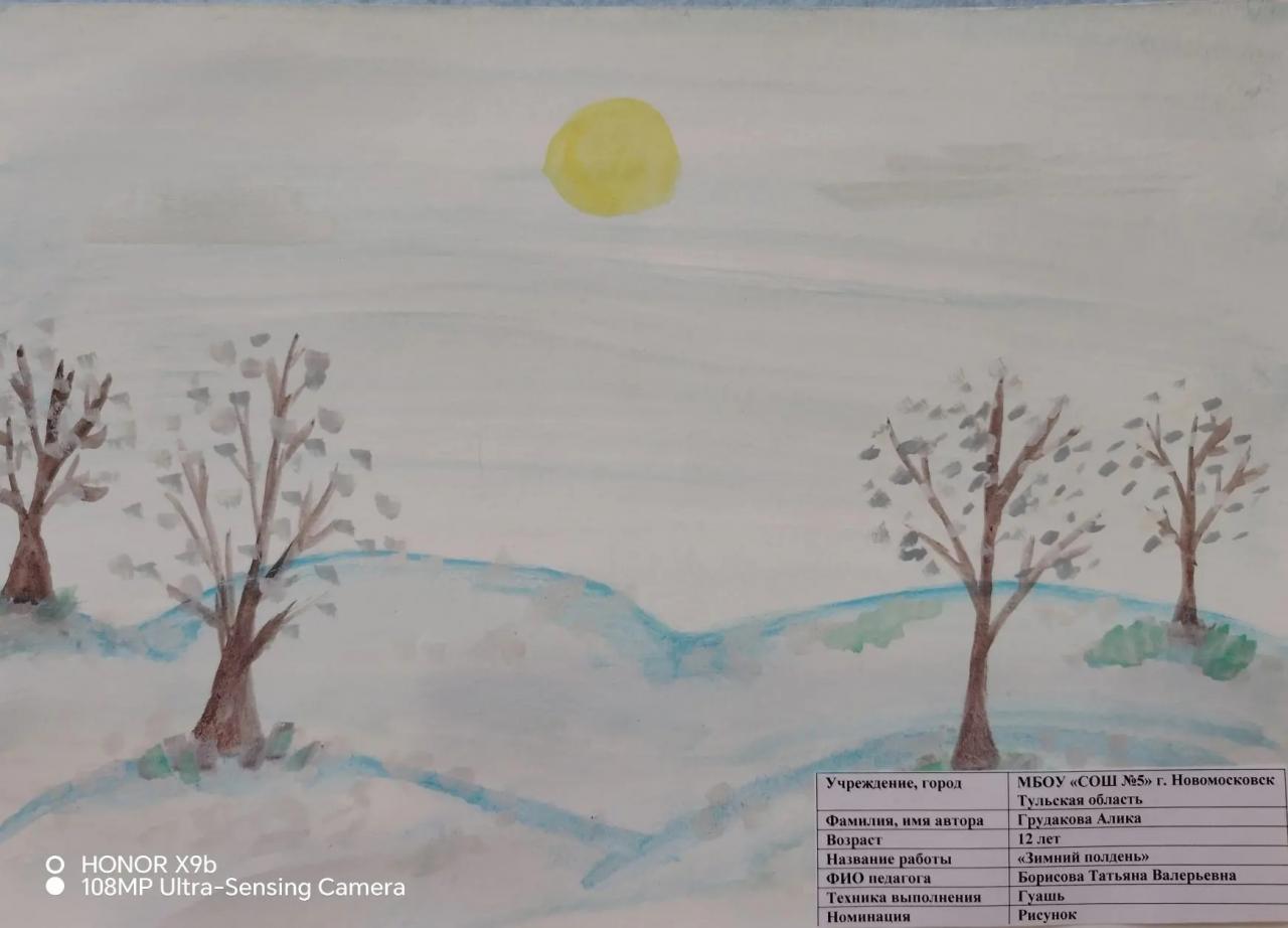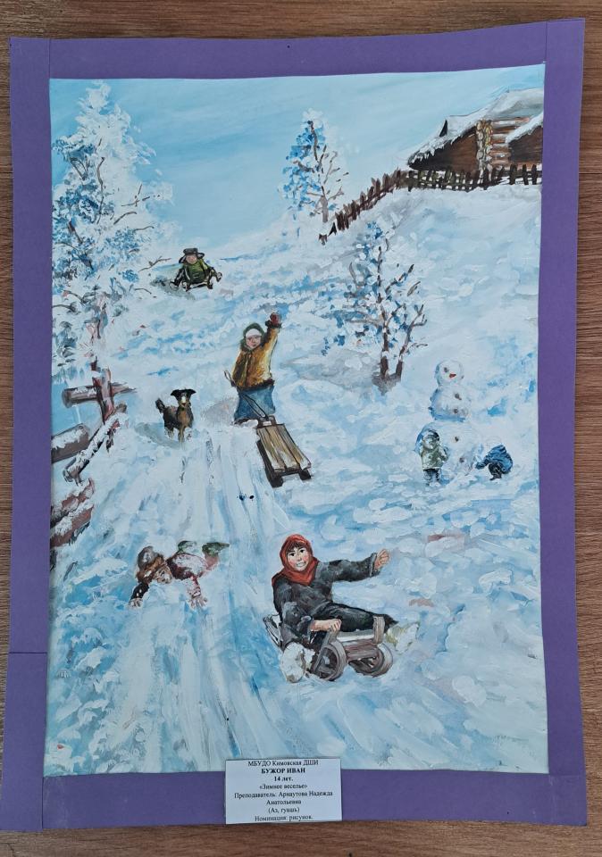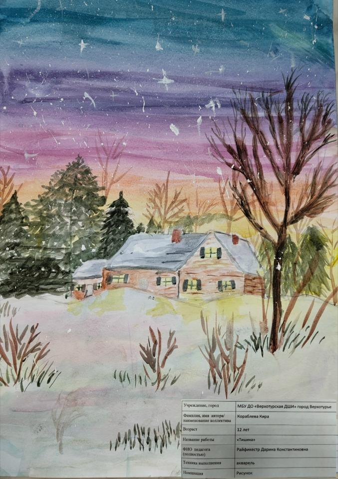 | 57 | Грудакова Алика | "Зимний полдень" | Рисунок | Борисова Татьяна Валерьевна | Фотография работы |