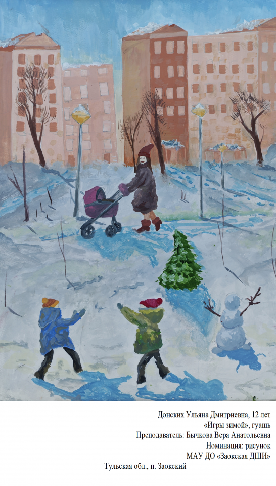 | 81 | Донских Ульяна | "Игры зимой" | Рисунок | Бычкова Вера Анатольевна | Фотография работы |