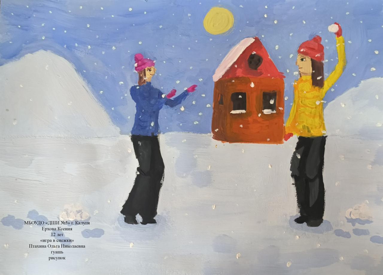 | 33 | Ерхова Ксения | "Игра в снежки" | Рисунок | Птахина Ольга Николаевна | Фотография работы |