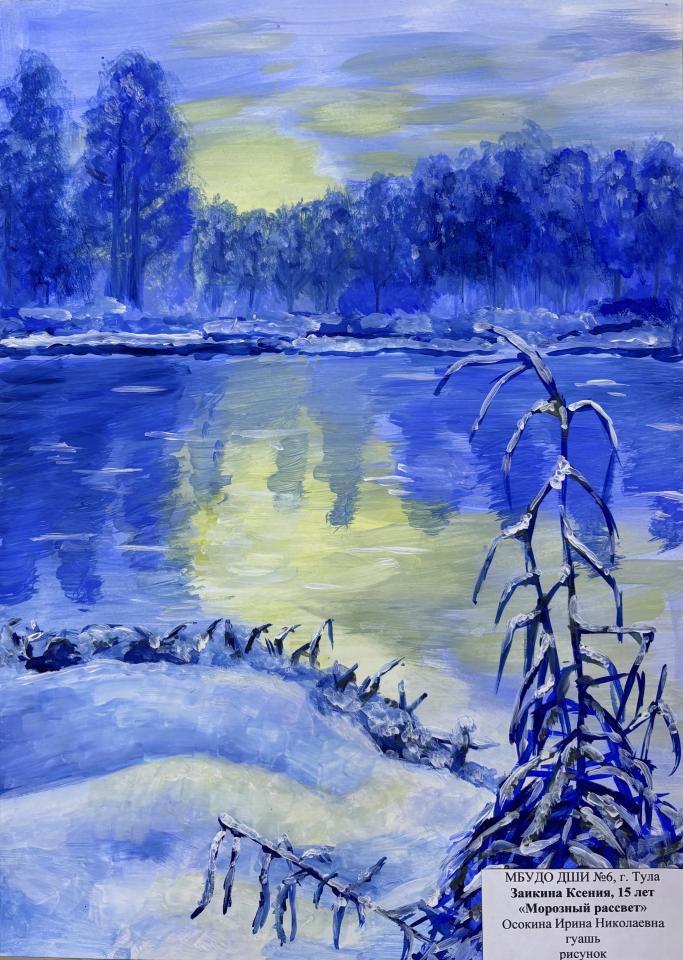 | 9 | Заикина Ксения | "Морозный рассвет" | Рисунок | Осокина Ирина Николаевна | Фотография работы |