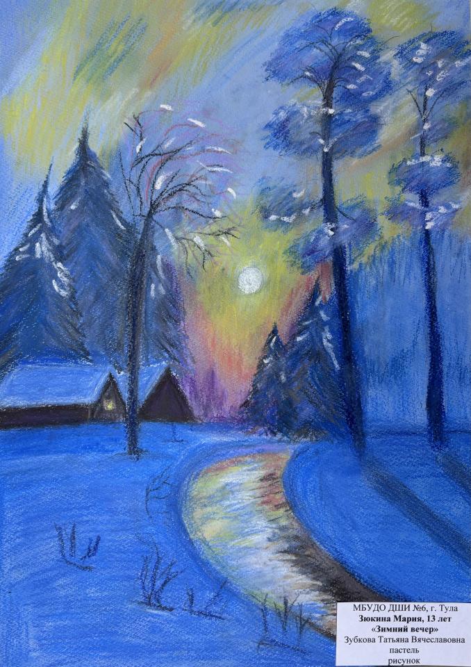 | 20 | Зюкина Мария | "Зимний вечер" | Рисунок | Зубкова Татьяна Вячеславовна | Фотография работы |