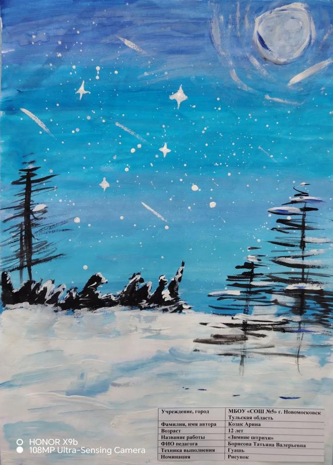 | 59 | Козак Арина | "Зимние штрихи" | Рисунок | Борисова Татьяна Валерьевна | Фотография работы |