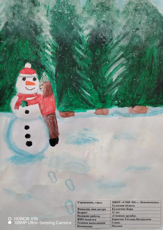 | 58 | Кудлачёва Кира | "Снежная дружба" | Рисунок | Борисова Татьяна Валерьевна | Фотография работы |