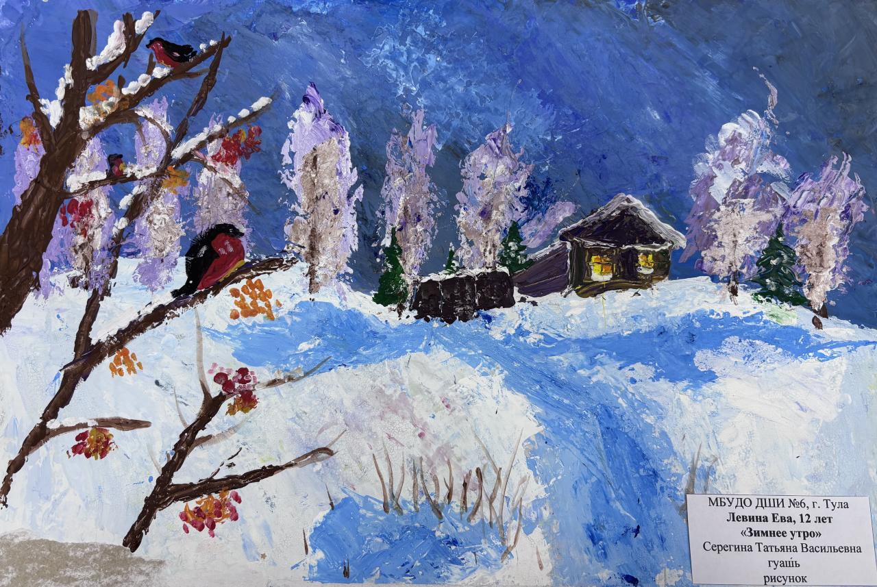 | 28 | Левина Ева | "Зимнее утро" | Рисунок | Серегина Татьяна Васильевна | Фотография работы |
