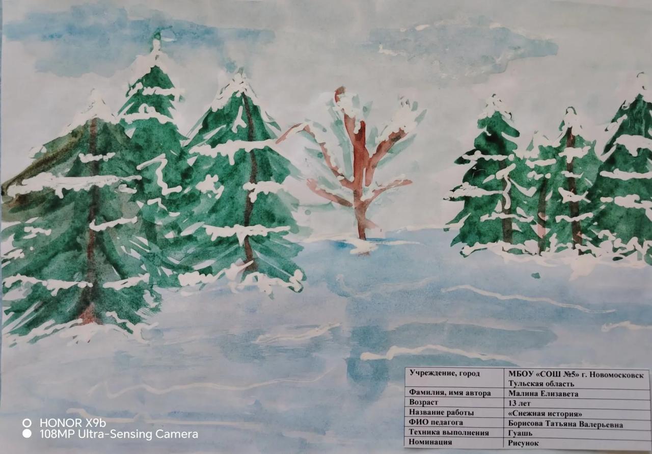| 61 | Малина Елизавета | "Снежные истории" | Рисунок | Борисова Татьяна Валерьевна | Фотография работы |