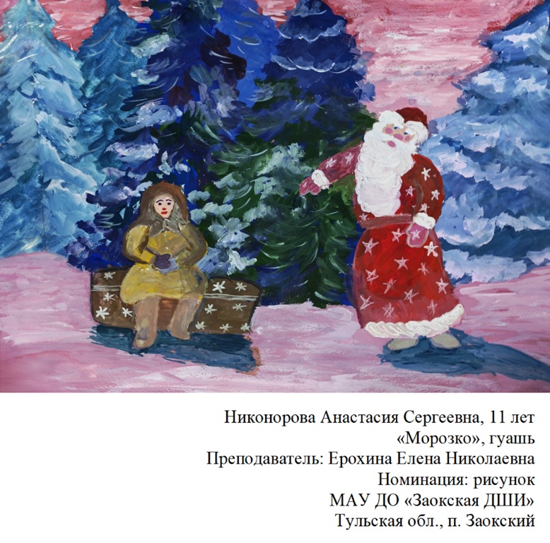 | 88 | Никоронова Анастасия | "Морозко" | Рисунок | Ерохина Елена Николаевна | Фотография работы |