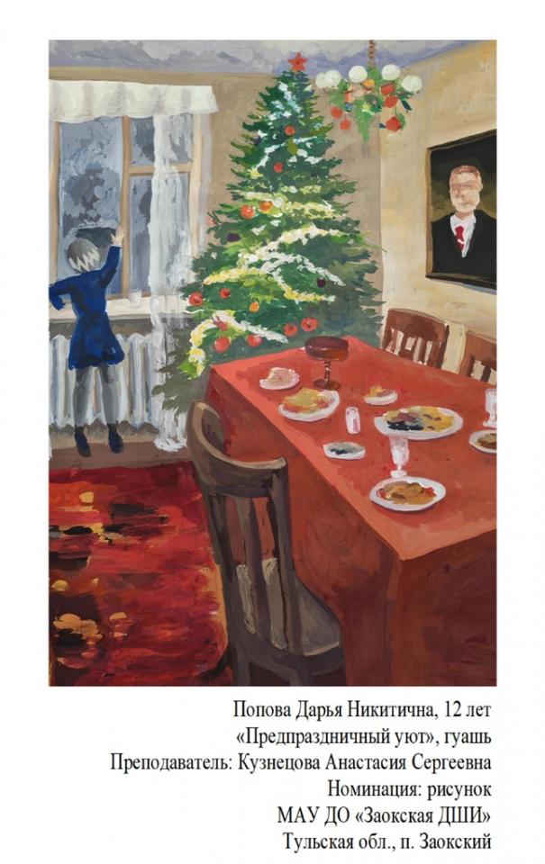 | 91 | Попова Дарья | "Предпраздничный уют" | Рисунок | Кузнецова Анастасия Сергеевна | Фотография работы |