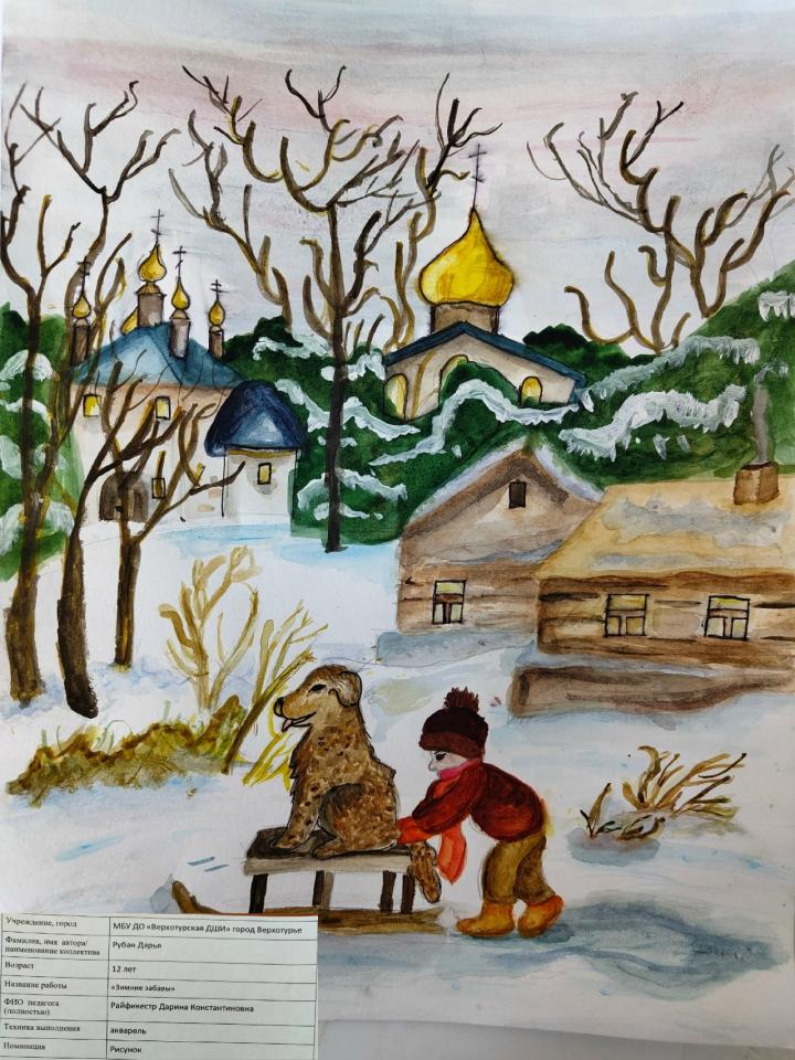| 56 | Рубан Дарья | "Зимние забавы" | Рисунок | Райфикестр Дарина Константиновна | Фотография работы |