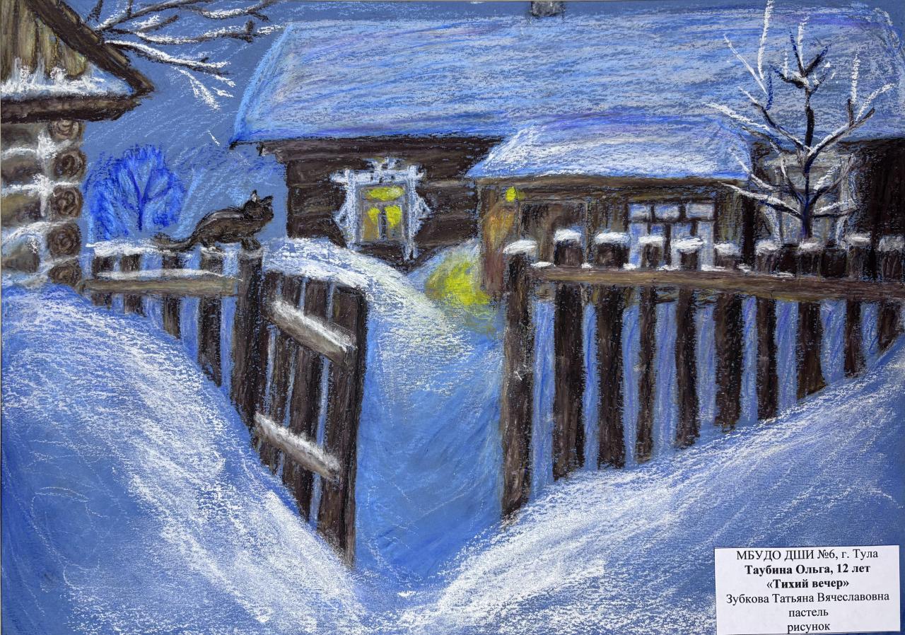 | 23 | Таубина Ольга | "Тихий вечер" | Рисунок | Зубкова Татьяна Вячеславовна | Фотография работы |