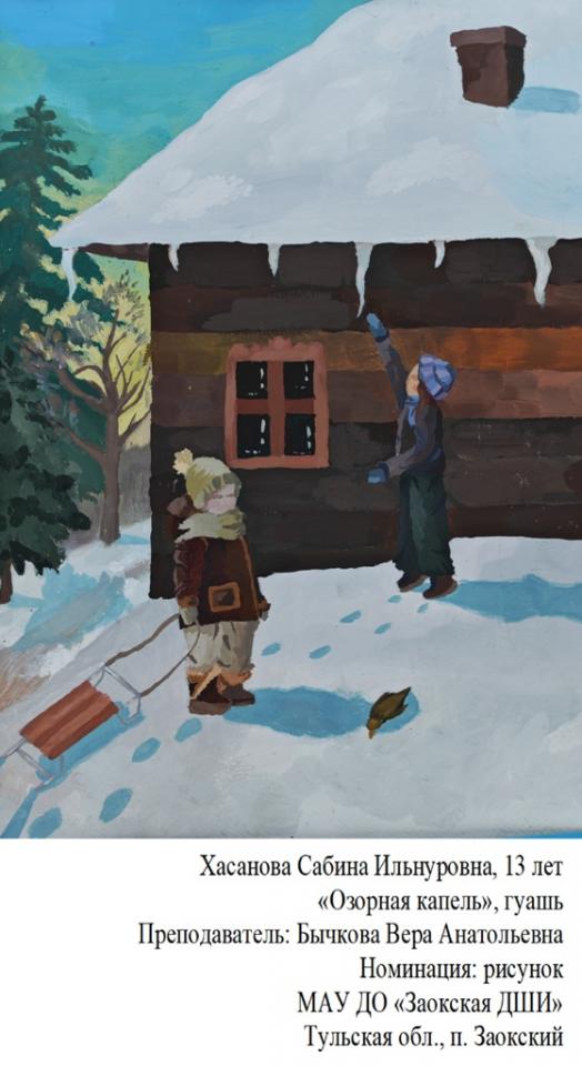 | 96 | Хасанова Сабина | "Озорная капель" | Рисунок | Бычкова Вера Анатольевна | Фотография работы |