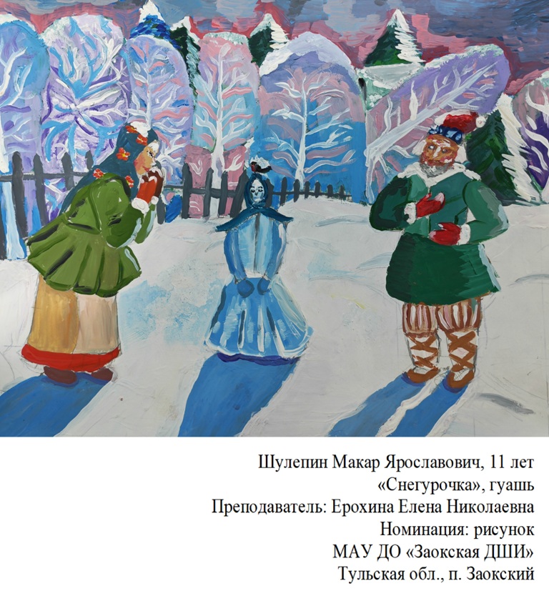 | 98 | Шулепин Макар | "Снегурочка" | Рисунок | Ерохина Елена Николаевна | Фотография работы |