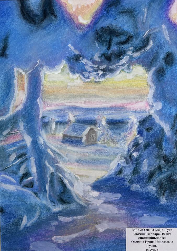 | 12 | Явкина Варвара | "Волшебный лес" | Рисунок | Осокина Ирина Николаевна | Фотография работы |