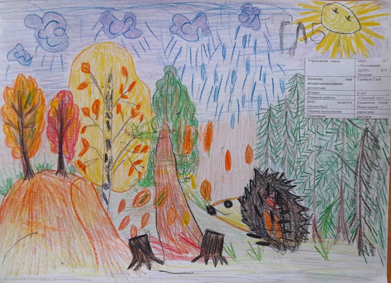 | 52 | Грибков Глеб | В обработке | "Осенний лес" | Рисунок | Каманина Анна Николаевна | Принята | Фотография работы |