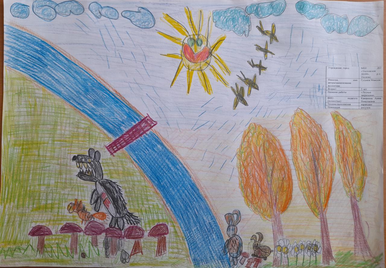 | 54 | Гуськов Максим | В обработке | "Лесные зверюшки" | Рисунок | Каманина Анна Николаевна | Принята | Фотография работы |
