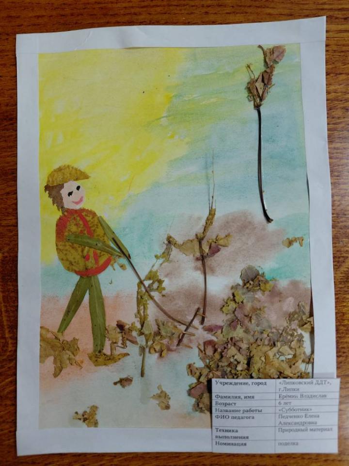 | 32 | Ерёмин Владислав | В обработке | "Субботник" | Поделка | Педченко Е.А. | Принята | Фотография работы |