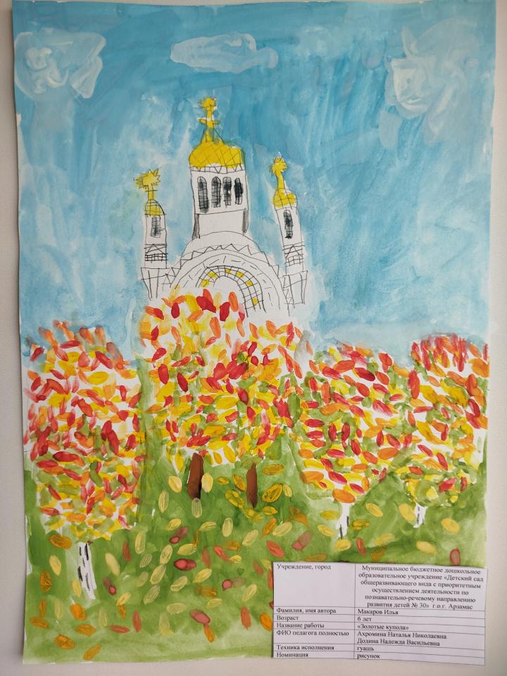 | 27 | Макаров Илья | В обработке | "Золотые купола" | Рисунок | Ахромина Наталья Николаевна | Принята | Фотография работы |