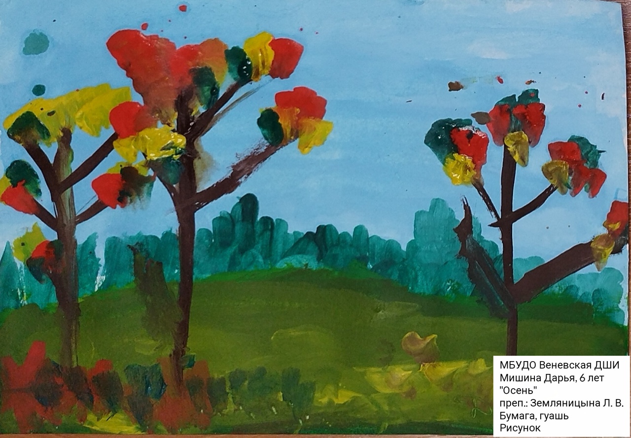 | 62 | Мишина Дарья | В обработке | "Осень" | Рисунок | Земляницына Любовь Владимировна | Принята | Фотография работы |