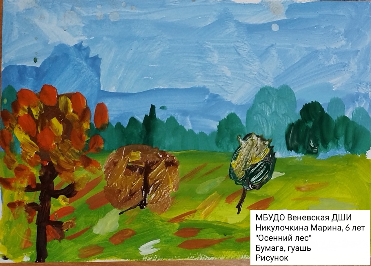 | 63 | Никулочкина Марина | В обработке | "Осенний лес" | Рисунок | Земляницына Любовь Владимировна | Принята | Фотография работы |