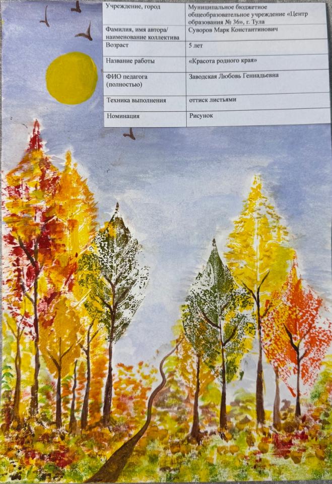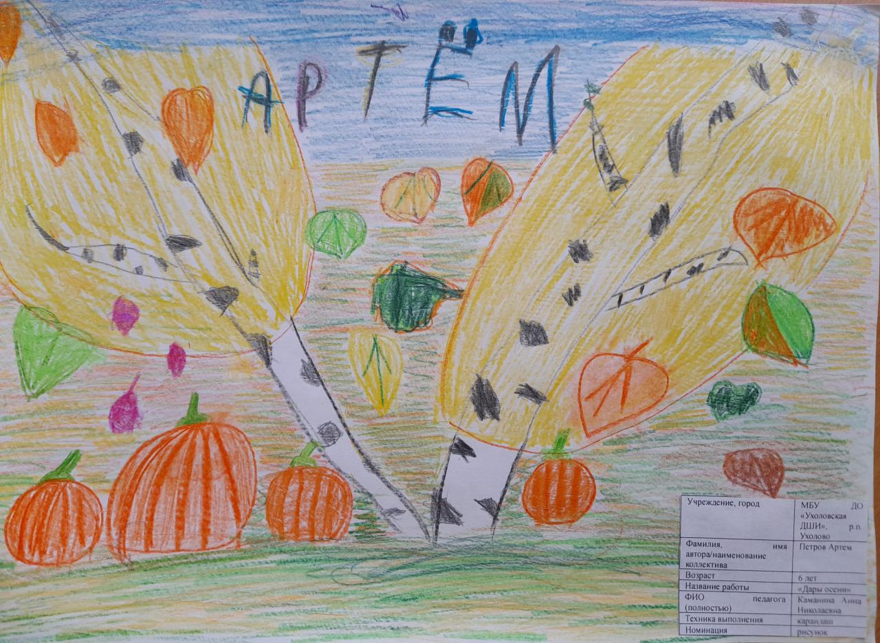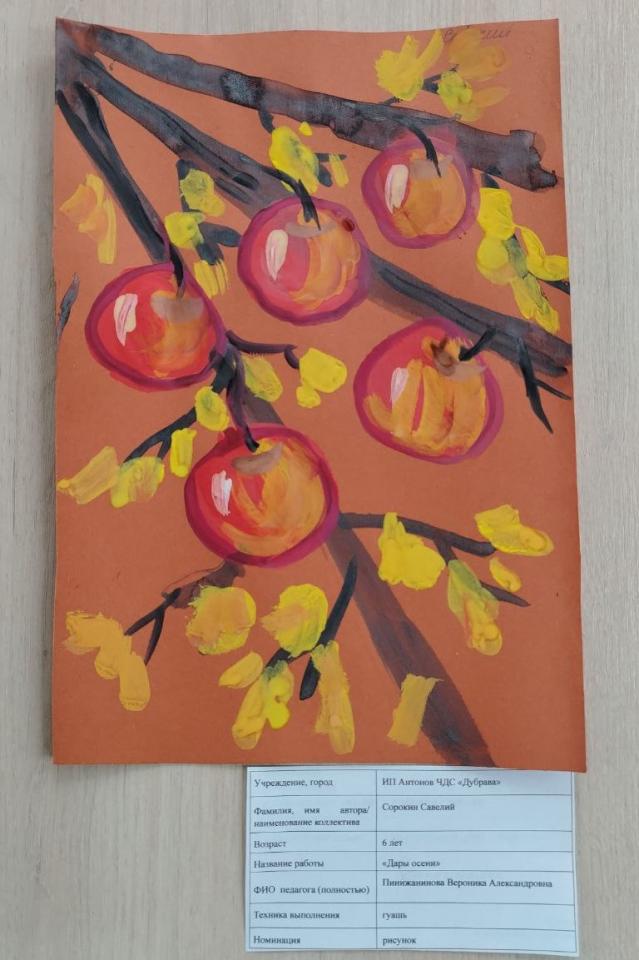 | 5 | Сорокин Савелий | В обработке | "Дары осени" | Рисунок |