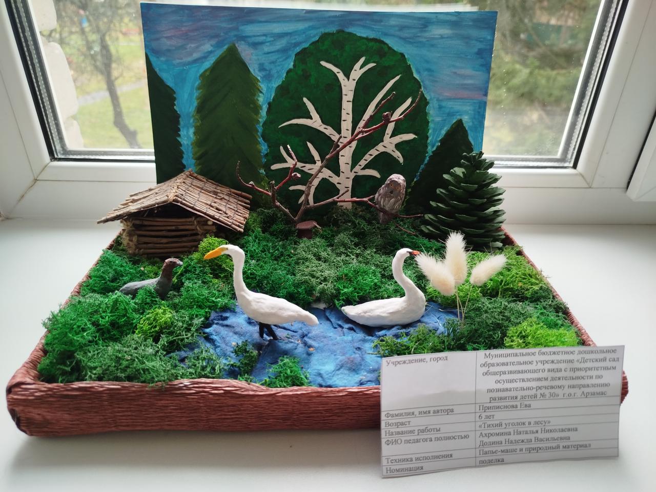 | 28 | Приписнова Ева | В обработке | "Тихий уголок в лесу" | Поделка | Ахромина Наталья Николаевна | Принята | Фотография работы |