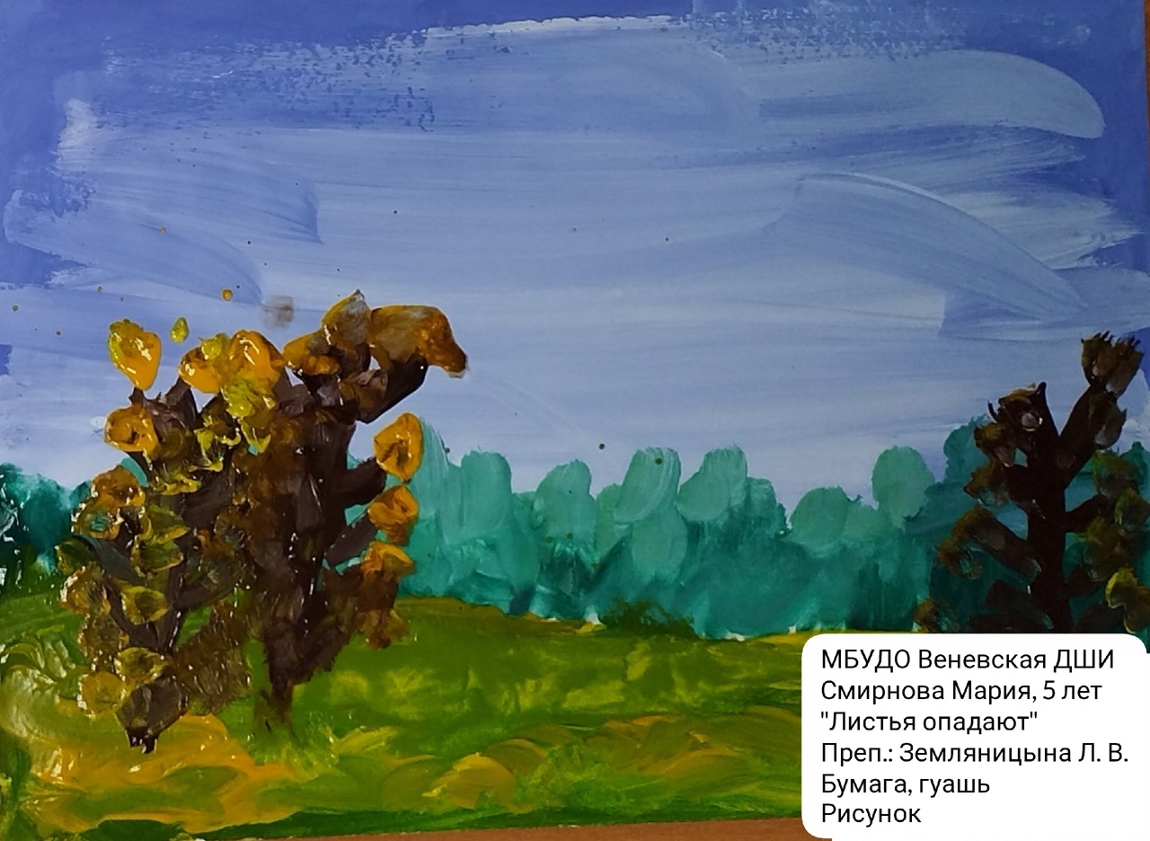 | 64 | Смирнова Мария | В обработке | "Листья опадают" | Рисунок | Земляницына Любовь Владимировна | Принята | Фотография работы |