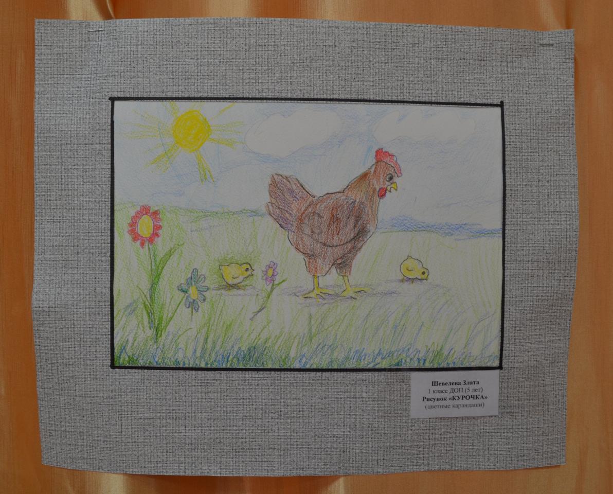 | 13 | Шевелева Злата | В обработке | "Курочка" | Рисунок | Бальзамов Юрийй Федорович | Принята | Фотография работы |