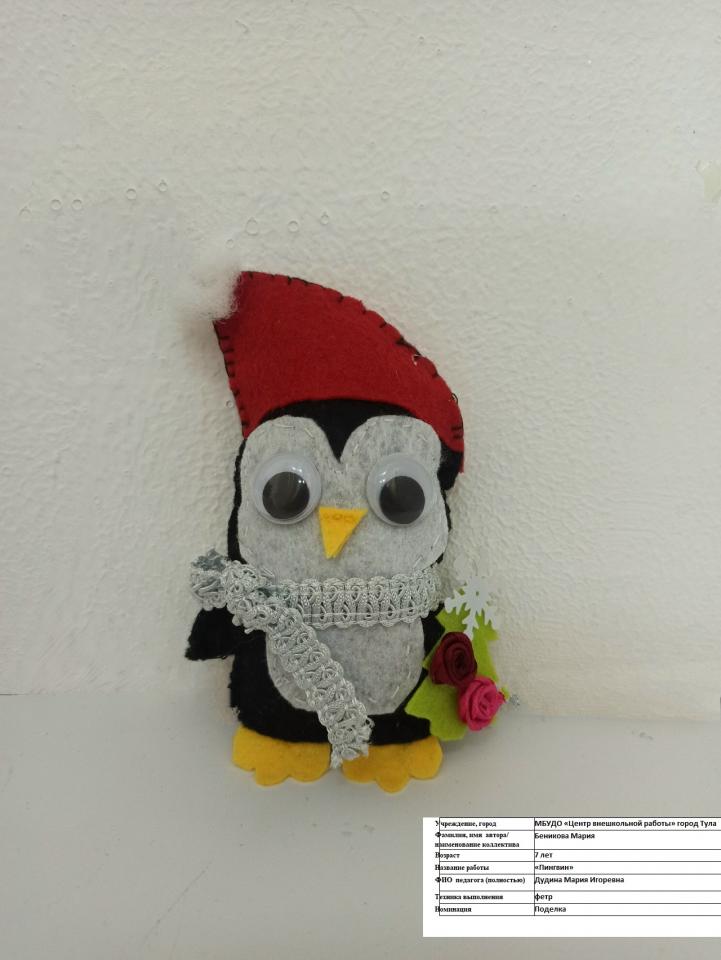 59 Беникова Мария "Пингвин" Поделка Дудина Мария Игоревна Фотография работы