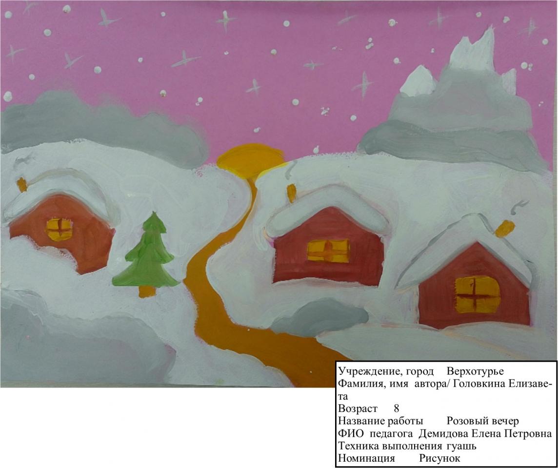 35 Головкина Елизавета "Розовый вечер" Рисунок Демидова Елена Петровна Фотография работы