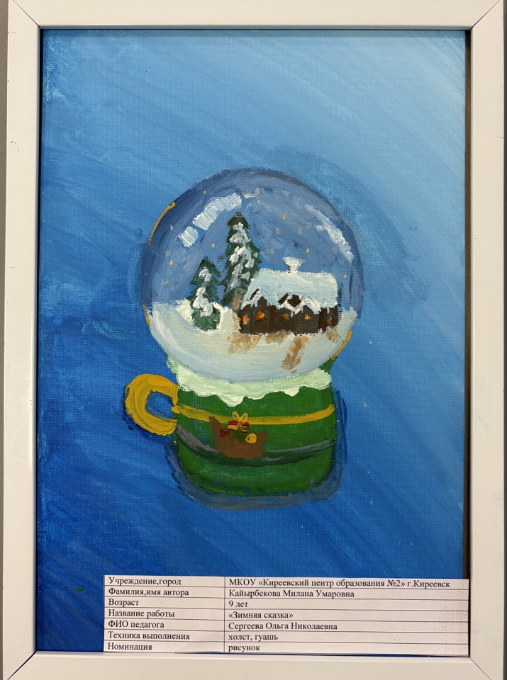 52 Кайырбекова Милана "Зимняя сказка" Рисунок Сергеева Ольга Николаевна Фотография работы