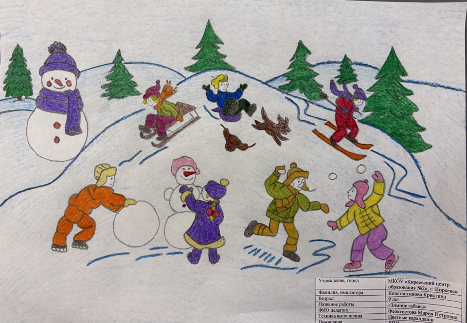50 Константинова Кристина "Зимние забавы" Рисунок Феоктистова Мария Петровна Фотография работы