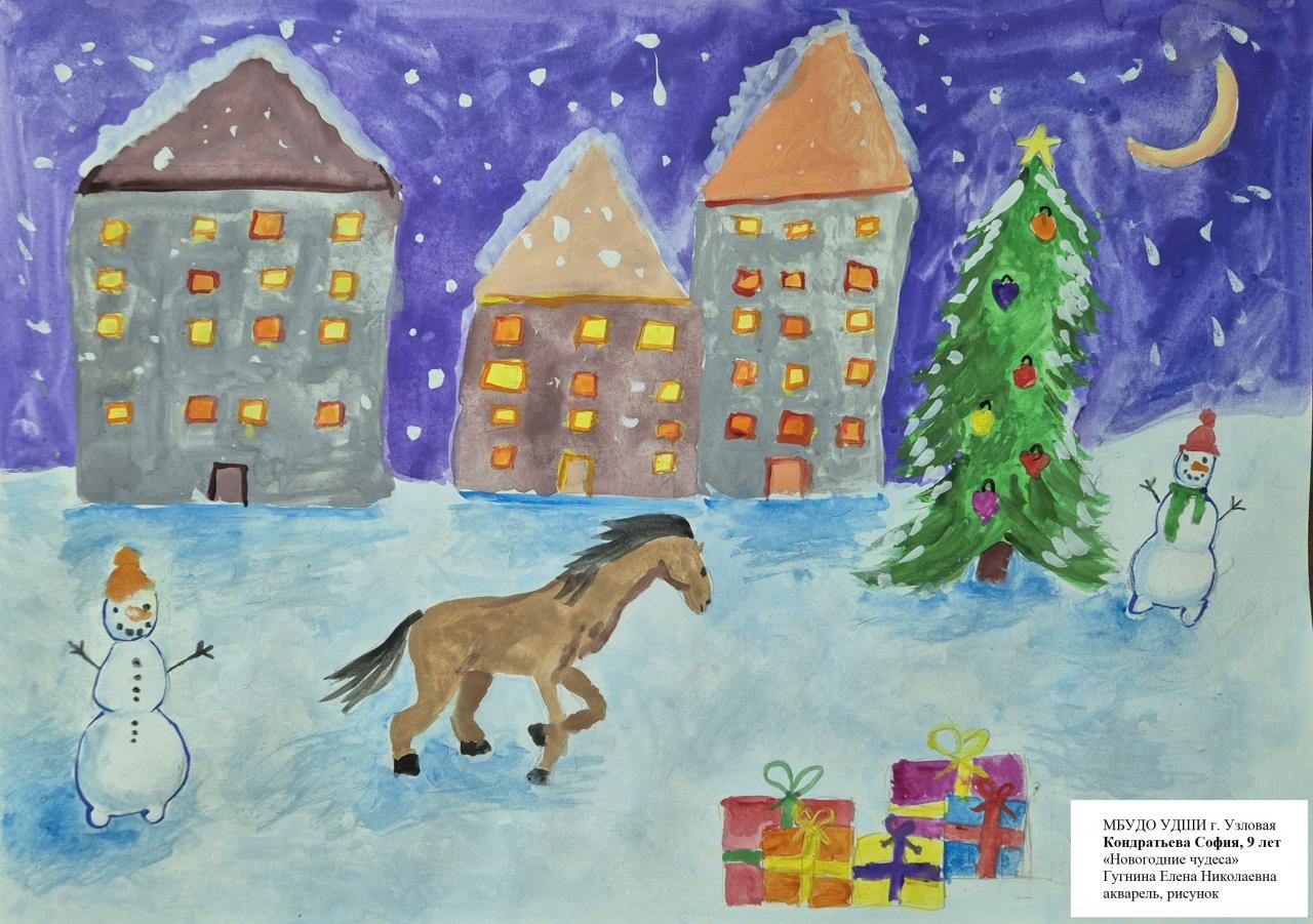 47 Кондратьева София "Новогодние чудеса" Рисунок Гугнина Елена Николаевна Фотография работы