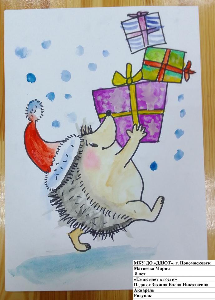 40 Матвеева Мария "Ёжик идёт в гости" Рисунок Зюзина Елена Николаевна Фотография работы