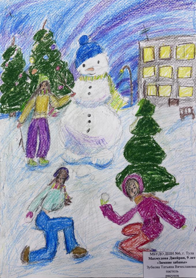 14 Махмудова Джейран "Зимние забавы" Рисунок Зубкова Татьяна Вячеславовна Фотография работы