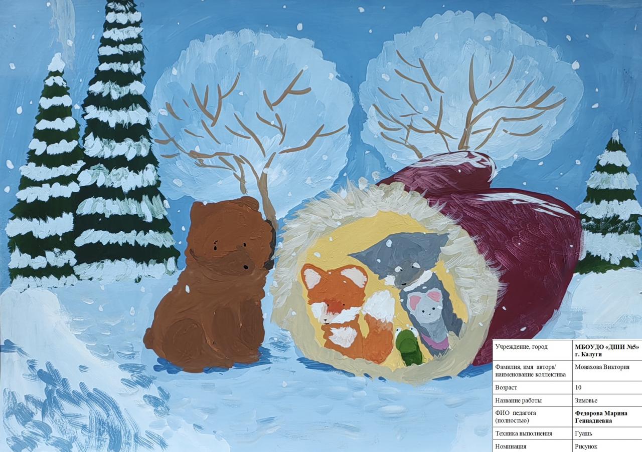 22 Монахова Виктория "Зимовье" Рисунок Федорова Марина Геннадиевна Фотография работы
