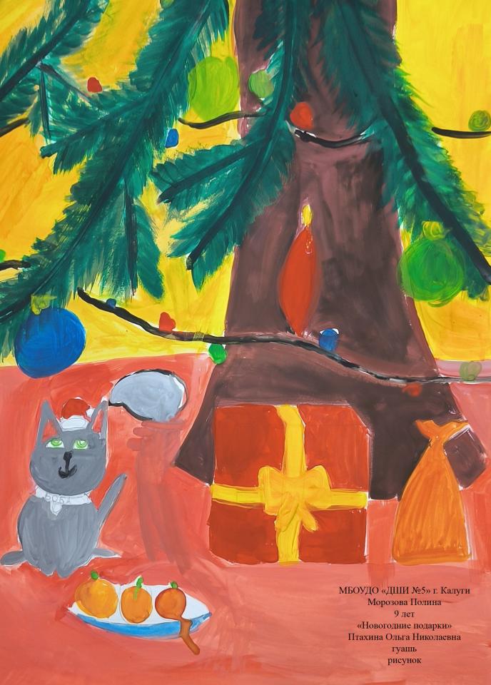 19 Морозова Полина "Новогодние подарки" Рисунок Птахина Ольга Николаевна Фотография работы
