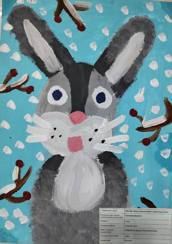 54 Полозова Дарьяна "Зимний заяц" Рисунок Райфикестр Дарина Константиновна  Фотография работы