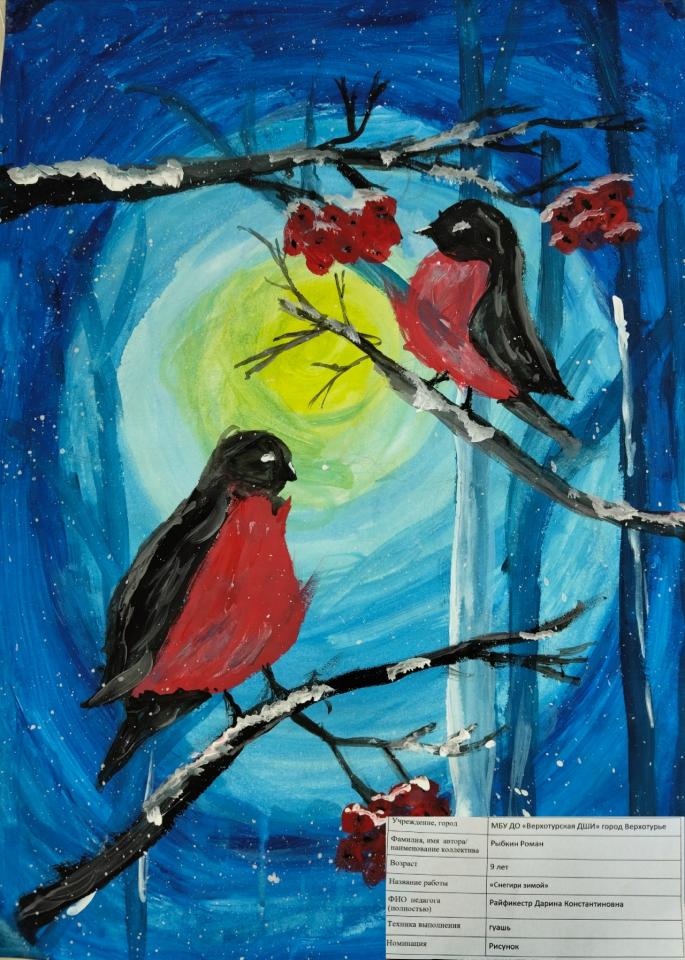 56 Рыбкин Роман "Снегири зимой" Рисунок Райфикестр Дарина Константиновна  Фотография работы