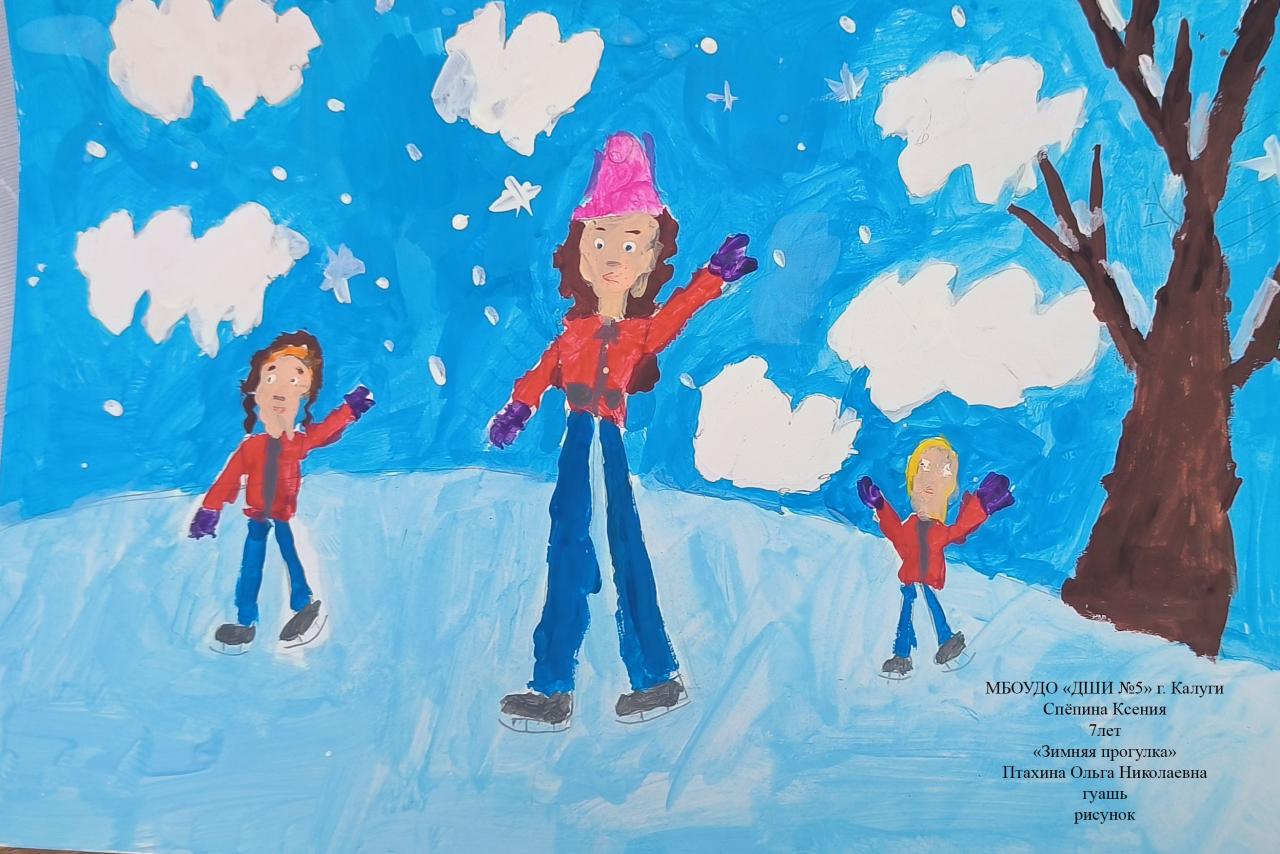 17 Стёпина Ксения "Зимняя прогулка" Рисунок Птахина Ольга Николаевна Фотография работы