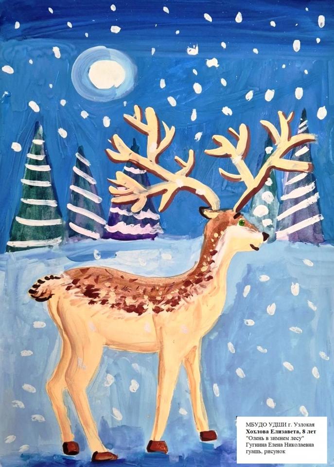 45 Хохлова Елизавета "Олень в зимнем лесу" Рисунок Гугнина Елена Николаевна Фотография работы