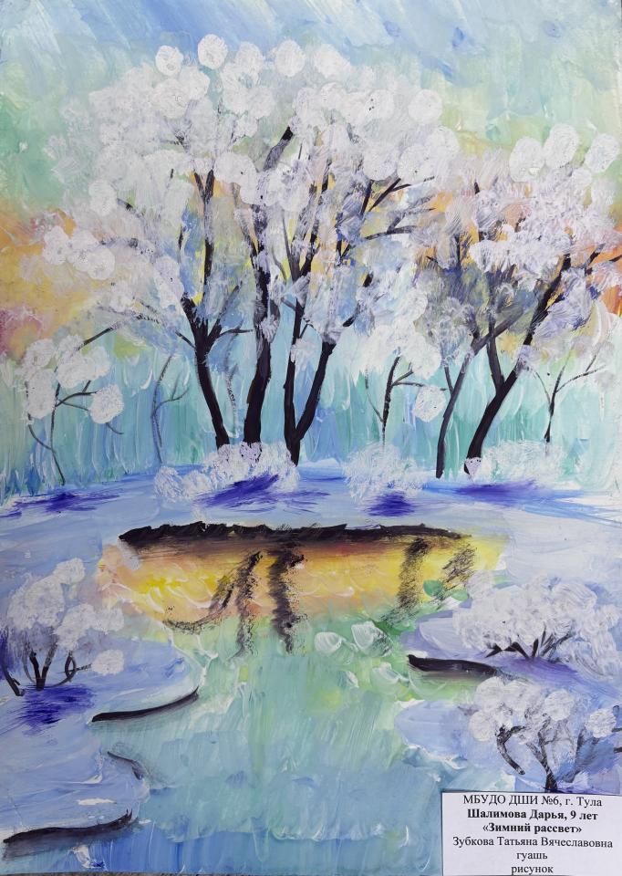 11 Шалимова Дарья "Зимний рассвет" Рисунок Зубкова Татьяна Вячеславовна Фотография работы