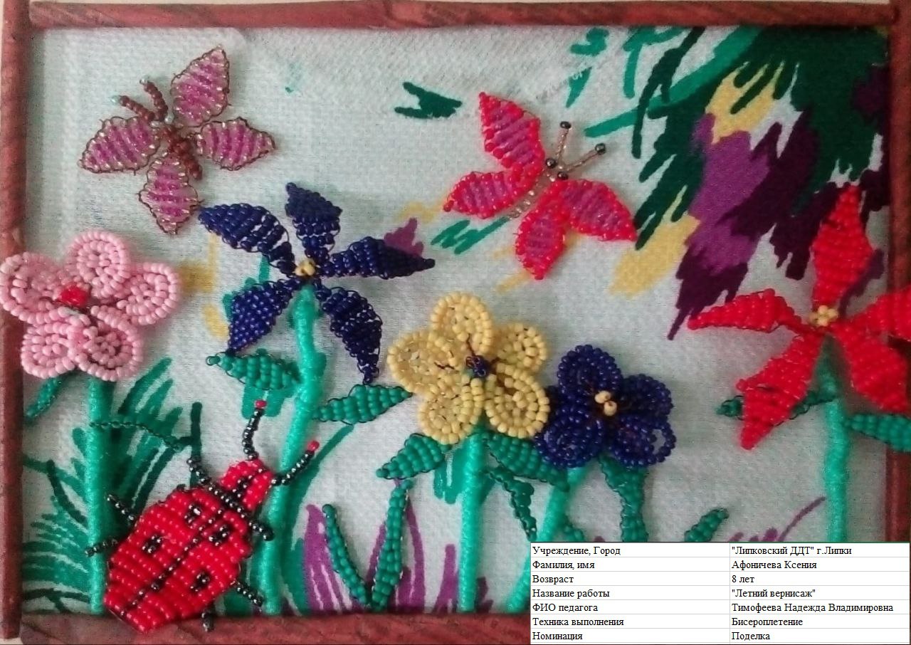 | 15 | Афоничева Ксения | В обработке | "Летний вернисаж" | Поделка | Тимофеева Н.В. | Принята | Фото работы |