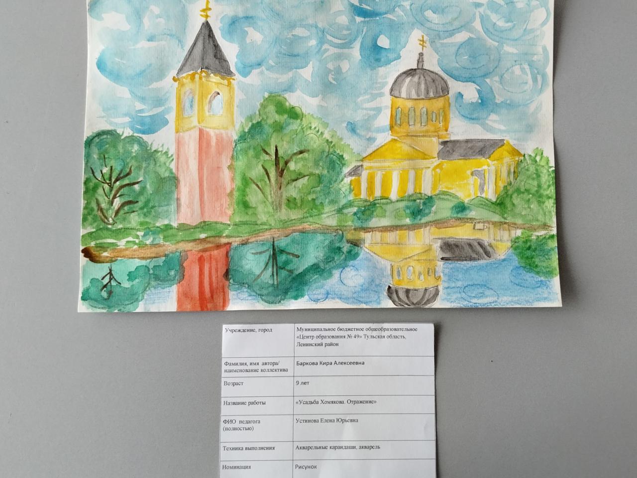 | 63 | Баркова Кира | В обработке | "Усадьба Хомякова. Отражение" | Рисунок | Устинова Елена Юрьевна | Принята | Фото работы |