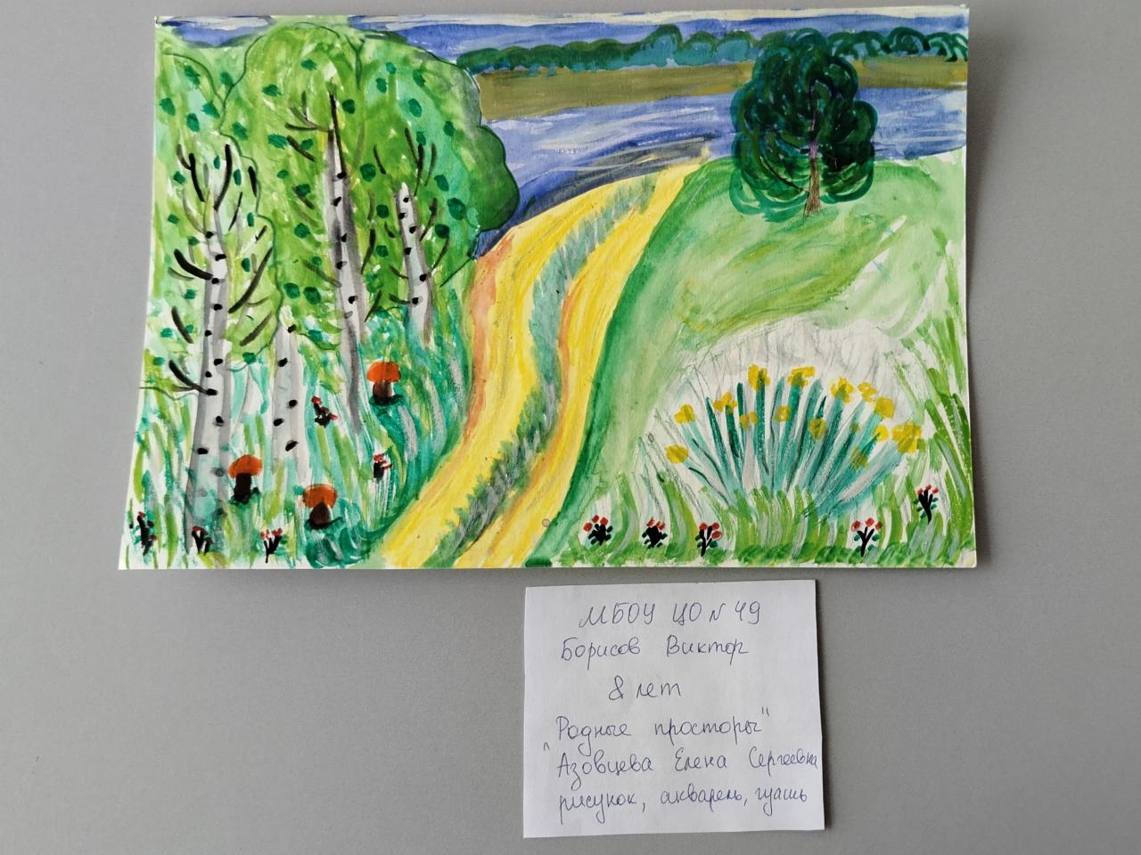 | 62 | Борисов Виктор | В обработке | "Родные просторы" | Рисунок | Азовцева Елена Сергеевна | Принята | Фото работы |