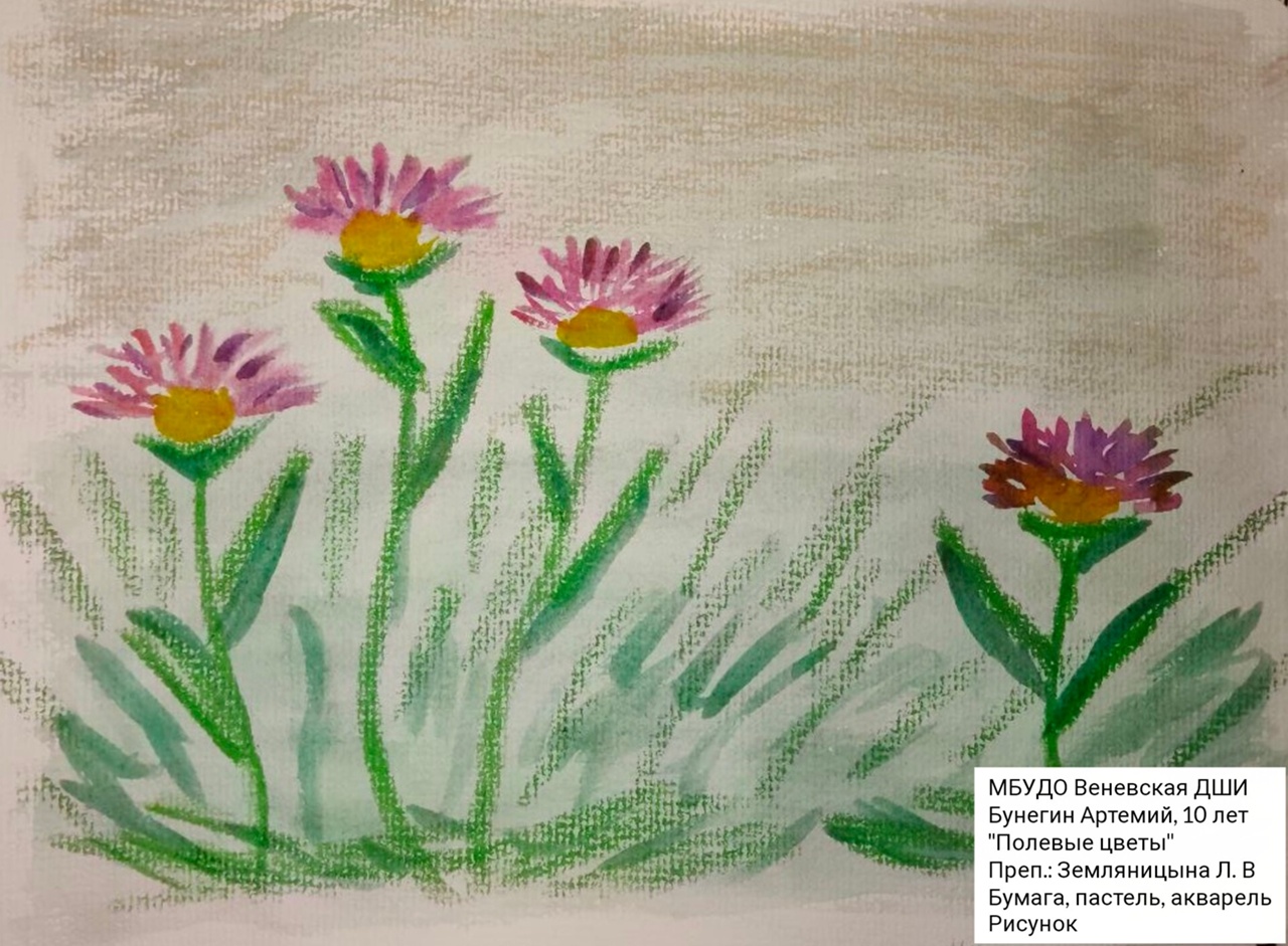| 102 | Бунегин Артемий | В обработке | "Полевые цветы" | Рисунок | Земляницына Любовь Владимировна | Принята | Фото работы |