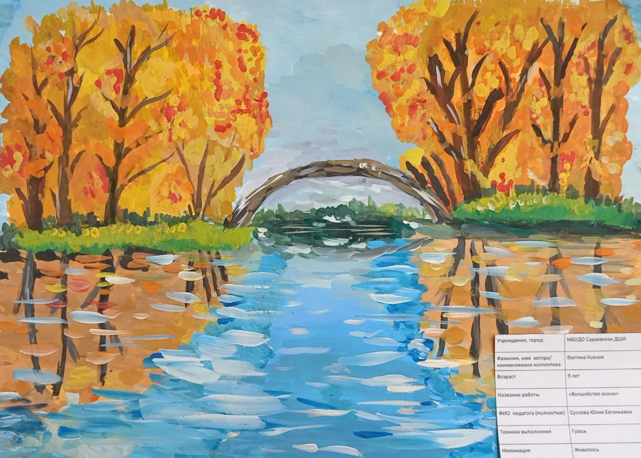 | 50 | Вахтина Ксения | В обработке | "Волшебство осени" | Рисунок | Суслова Юлия Евгеньевна | Принята | Фото работы |