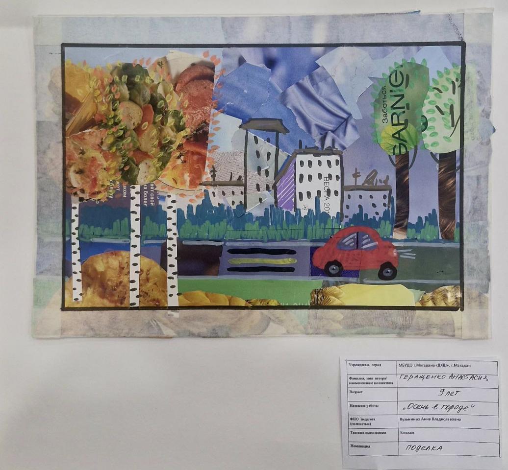 | 41 | Геращенко Анастасия | В обработке | "Осень в городе" | Поделка | Кузьминых Анна Владиславовна | Принята | Фото работы |